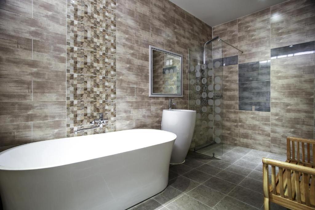 Deluxe Double Room. Featuring free toiletries and bathrobes, this double room includes a private bathroom with a shower, a hairdryer and slippers. The spacious double room features air conditioning, an electric kettle, heating and a flat-screen TV. The unit has 1 bed. ;