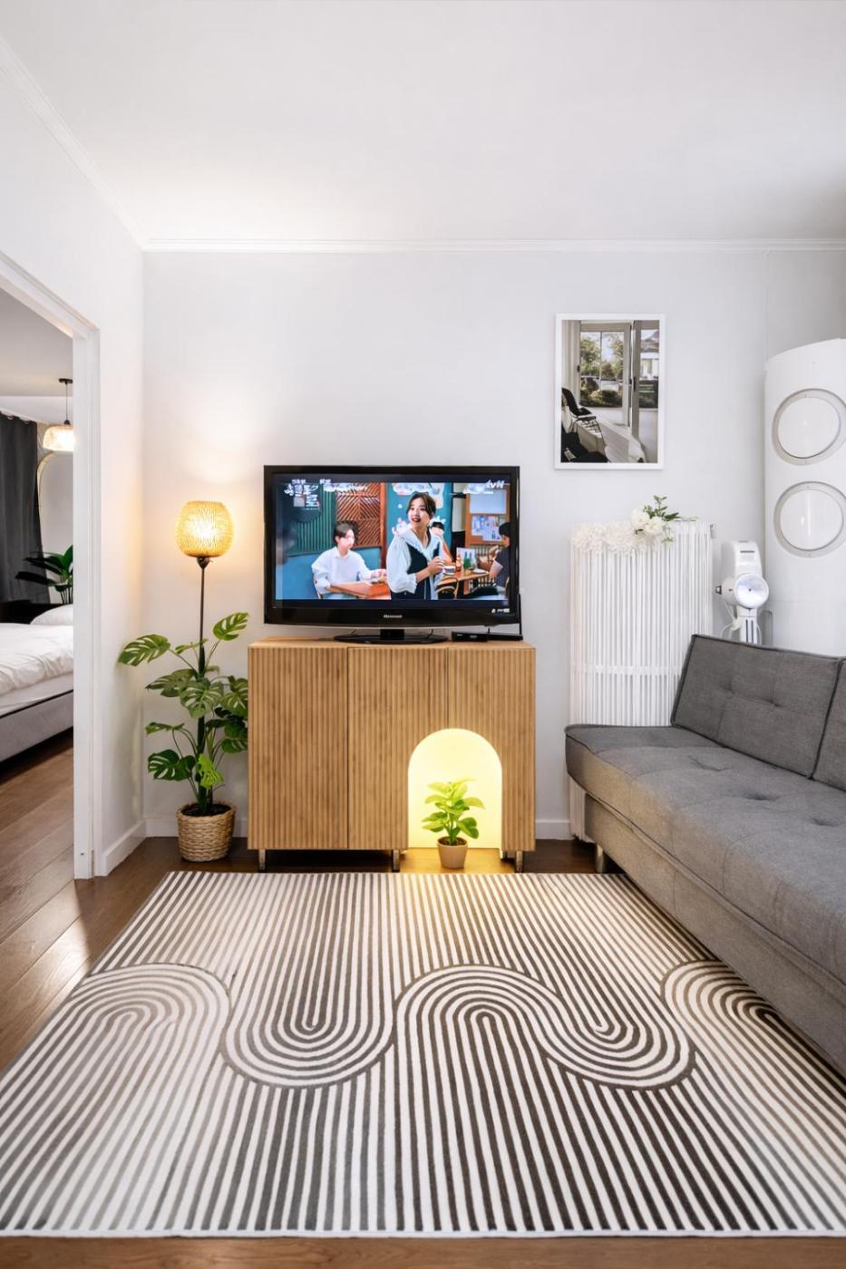 One-Bedroom Apartment. The air-conditioned apartment has 1 bedroom and 1 bathroom with a hairdryer and slippers. The apartments kitchen, which features a refrigerator and a microwave, is available for cooking and storing food. The apartment features a washing machine, an electric kettle, a sofa, heating and a flat-screen TV. The unit has 2 beds.