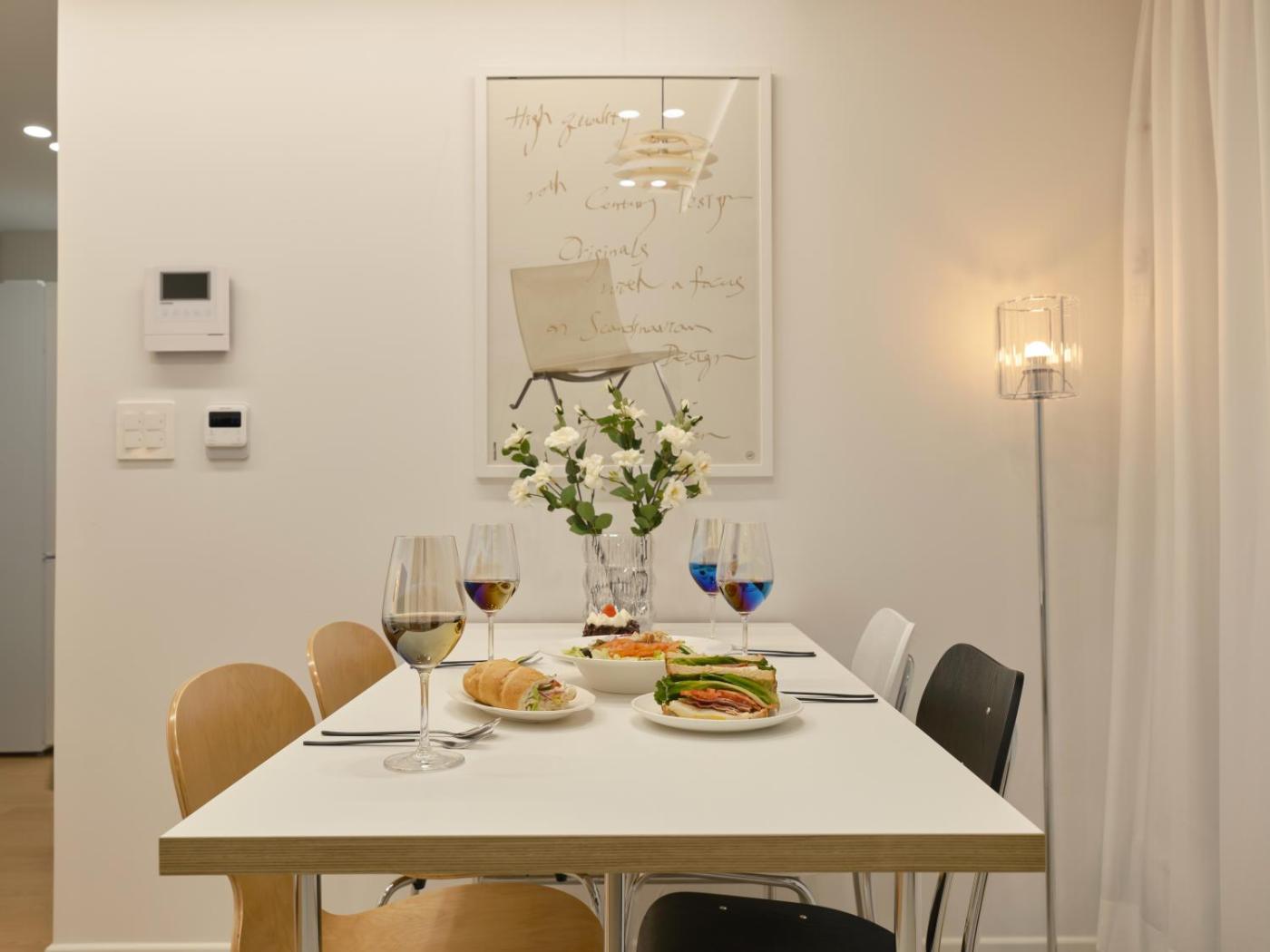 Two-Bedroom Apartment. This apartment includes 1 living room, 2 separate bedrooms and 1 bathroom with a shower and free toiletries. In the fully equipped kitchen, guests will find a stovetop, a refrigerator, kitchenware and a microwave. The air-conditioned apartment offers a flat-screen TV with streaming services, a washing machine, a dining area and an electric kettle. The unit has 2 beds.