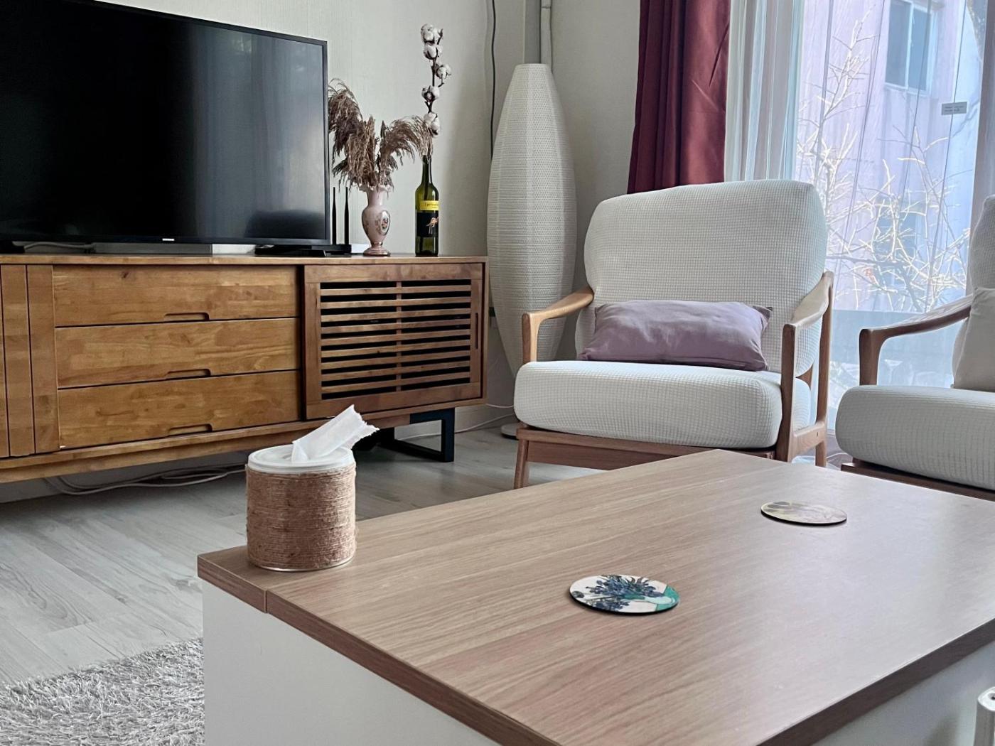One-Bedroom Apartment. Boasting a private entrance, this air-conditioned apartment includes 1 living room, 1 separate bedroom and 1 bathroom with a shower and a hairdryer. In the kitchen, guests will find a stovetop, a refrigerator, kitchenware and an oven. The spacious apartment offers a washing machine, a seating area, a dining area, a wardrobe and a flat-screen TV with cable channels. The unit has 1 bed.