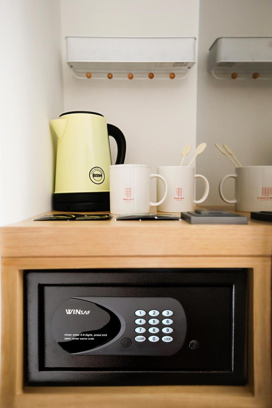 Patio Twin. Offering bathrobes, this twin room includes a private bathroom with a shower, a bidet and a hairdryer. The air-conditioned twin room offers a flat-screen TV with cable channels, a safe deposit box, an electric kettle, heating as well as city views. The unit offers 2 beds. ;