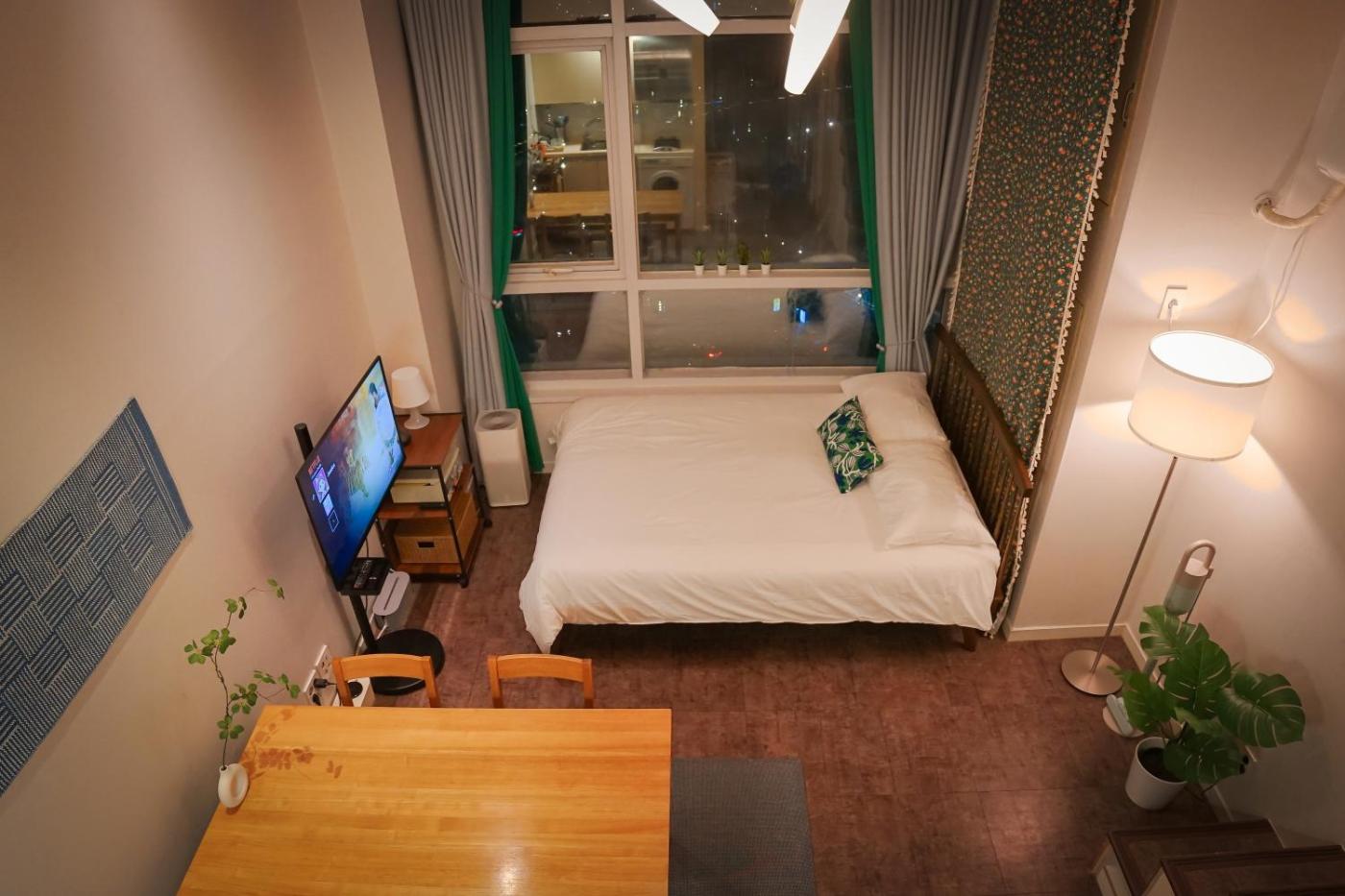 Two-Bedroom Apartment with City View. The air-conditioned apartment has 2 bedrooms and 1 bathroom with a shower and a bidet. Guests can make meals in the kitchen that features a stovetop, a refrigerator, kitchenware and a microwave. The apartment features a washing machine, a dining area, an electric kettle, a flat-screen TV, as well as city views. The unit has 2 beds.