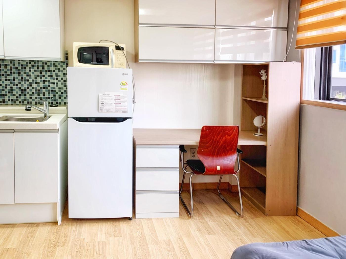 Single Room. The single room offers air conditioning, a washing machine, as well as a private bathroom boasting a shower and a hairdryer. The well-fitted kitchen has a refrigerator, kitchenware, a microwave and an electric kettle. Rooms on the upper floors are reachable by lift. The unit has 1 bed.