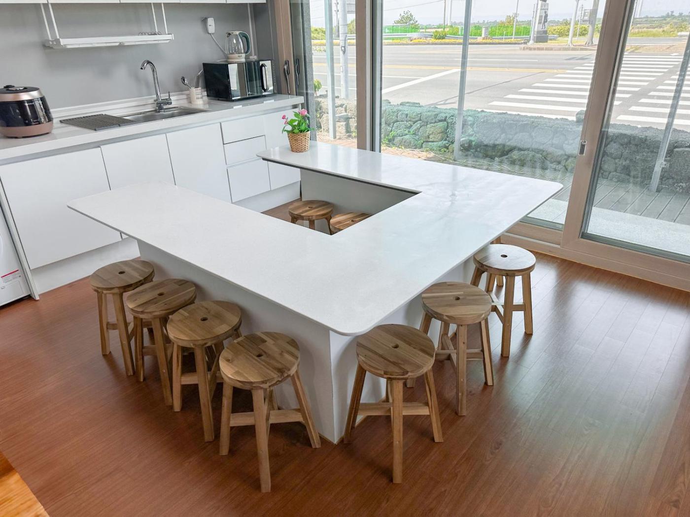 김녕 오션뷰 14인 독채- 방5개, 퀸침대7개 바다 코앞 특별가, a property with a terrace, is situated in Tonggimnyŏng-ni, 14 km from Bengdwigul Cave, 21 km from Seongsan Ilchulbong, as well as 23 km from Jeju National Museum. The air-conditioned accommodation is 1.4 km from Gimnyeong Beach, and guests can benefit from private parking available on site and free WiFi. The property is non-smoking and is12 km from Bijarim Forest.